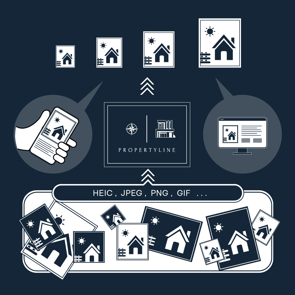 Automatically resize, covert and adapt your images. Link to multiple properties for easy management.