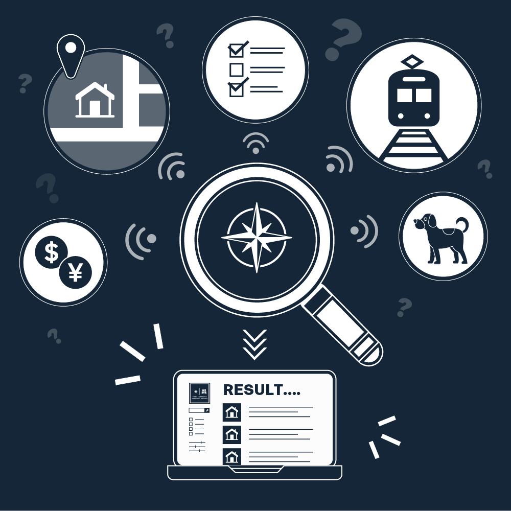 Easily search by map, train line or station, nearby places, rent, amenities, layout and much more.