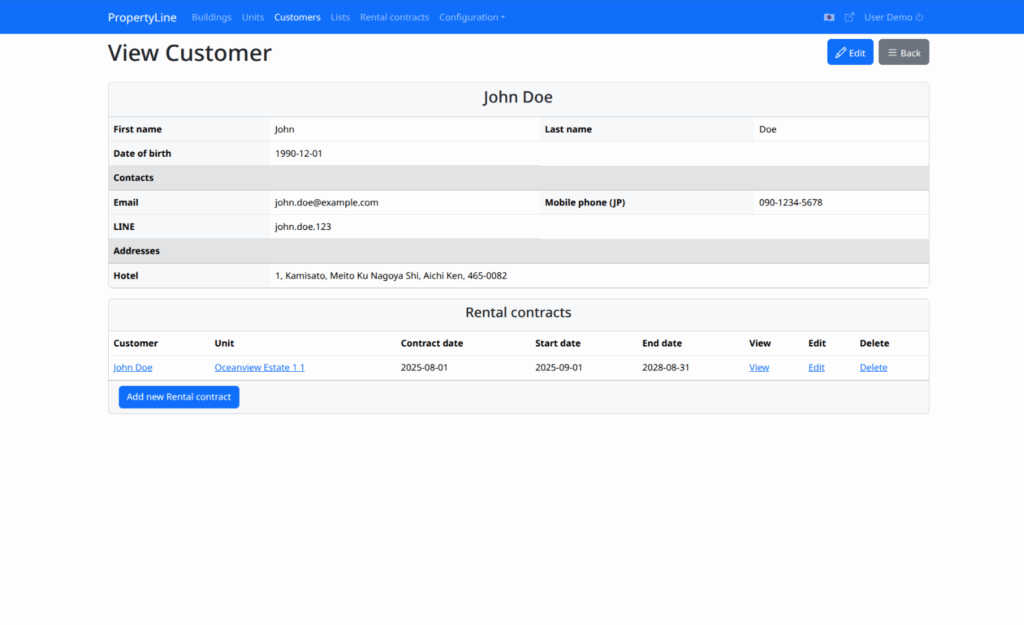 View all customers that rented a property at a glance, easily reference previous rental contracts for a property, quickly find contact information for a tenant.