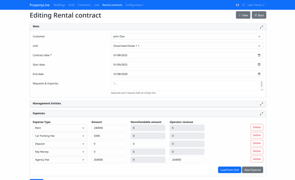- Management entities (agent, owner, etc.) configurable per-contract, importable from property listing