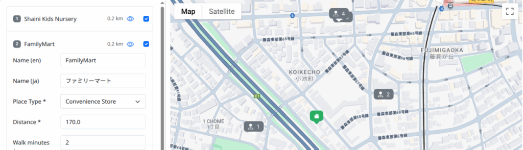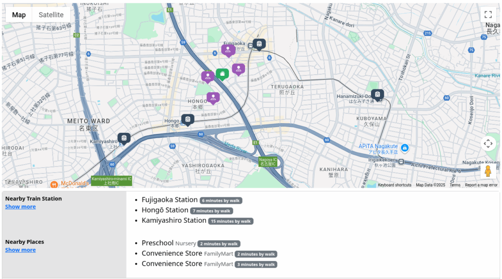 • Interactable map showing the configured nearby point of interest and train stations